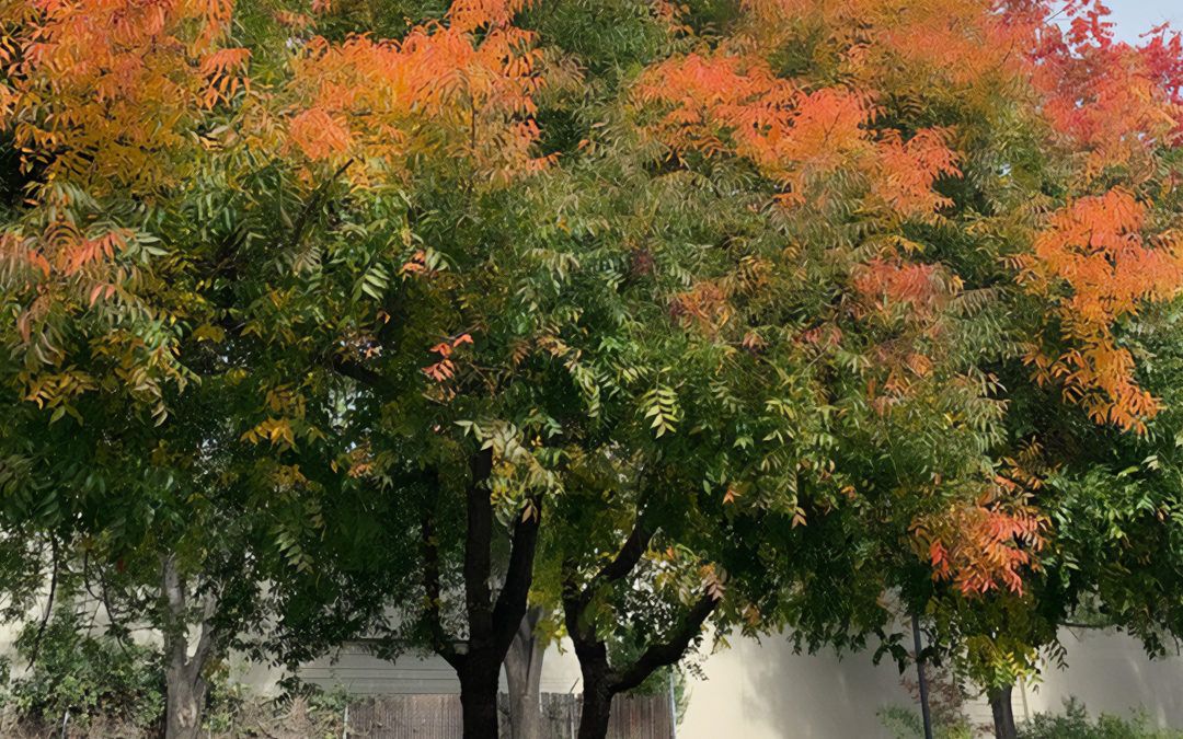 - Fall: One of the most striking features of the Chinese pistache is the brilliant fall color. In autumn, the leaves turn vibrant shades of red, orange, yellow, or a mix of all three, making it one of the standout trees for fall foliage.