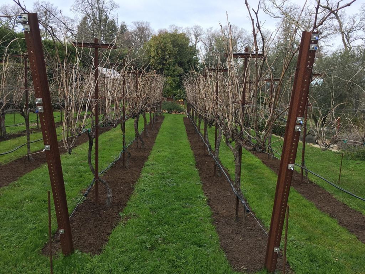 Our design ensured uniform drip irrigation water pressure and trellis integrity.
